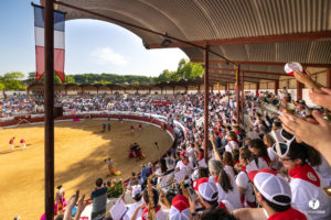Cette année encore, à partir de 16h30 les musiciens auront l’unique but de faire monter l’ambiance dans les gradins de la plaza Maurice Lauche avant le paseo. C’est le désormais traditionnel Desafío des Bandas !! Depuis 3 ans maintenant, ce desafío a une saveur particulière cette année avec la présence des meilleures txarangas navarraises : La Txaranga Forris’Tar, la Koxka et La Malatxo cette année !!